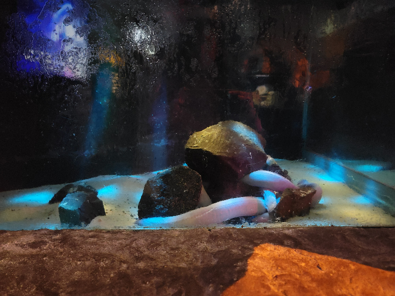 수조 안에 있는 먹장어는 민달팽이처럼 길다란 생김새였어요.