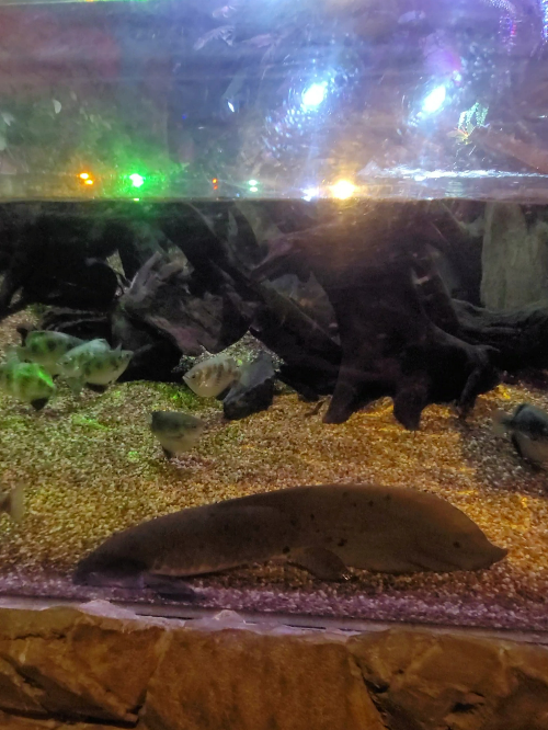 수조 안을 유유히 헤엄치는 폐어의 모습입니다.