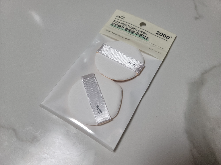 밀리 쫀쫀텐션 물방울 쿠션퍼프 사용 후기입니다.