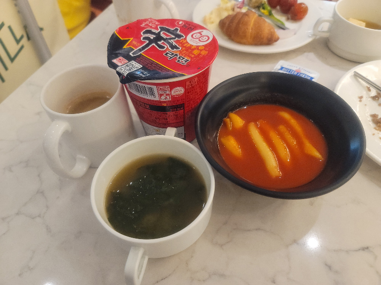 뷔페 한쪽에는 즉석 컵라면도 쌓여 있었습니다.