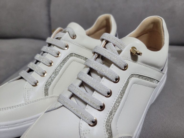 스니커즈의 끈도 묶는 형식이 아니라 이렇게 잡아당기는 형식으로 되어 있습니다.
