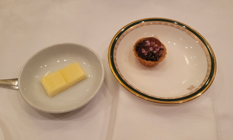 버터 한조각과 한입 크기의 작은 타르트가 나왔어요.