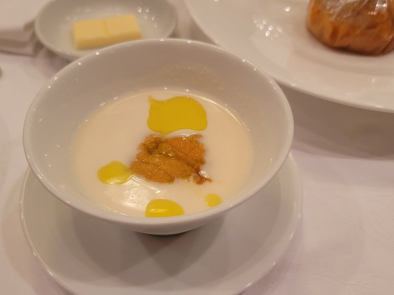 홋카이도의 대표 식재료인 신선한 우니와 옥수수의 달콤한 맛이 함께 더해진 요리였어요.