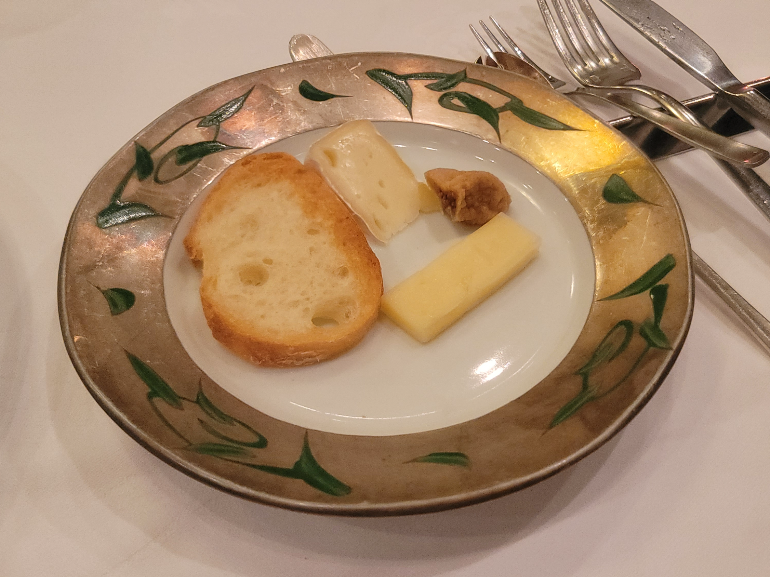 홋카이도 유명 치즈 공장, 앙주 드 프로마쥬에서 생산한 고급 치즈가 빵과 함께 나왔습니다.