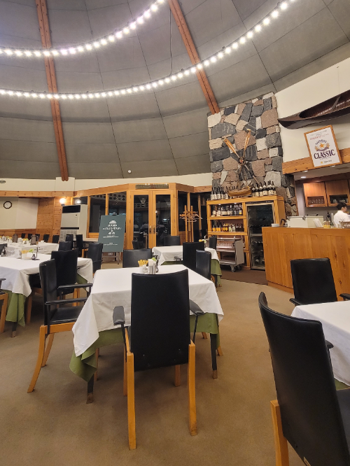 레스토랑 천장은 돔 형식으로 되어 있었는데 조명이 예쁘게 빛나고 있었어요.