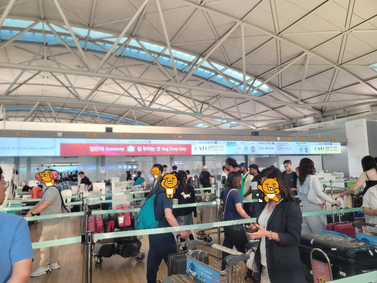 체크인하고 짐을 부치는데만 30분 가까이 줄을 섰어요.