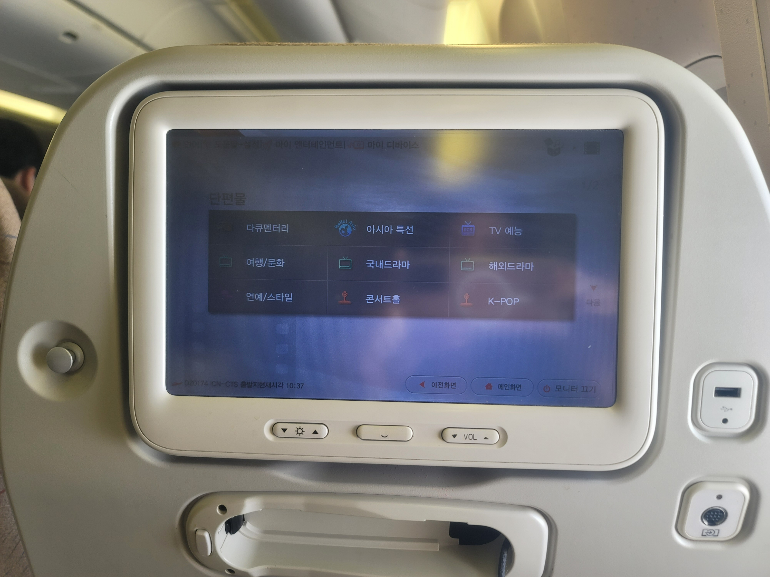 각 좌석마다 개인 모니터가 있어서 다양한 기내 엔터테인먼트를 즐길 수 있습니다.