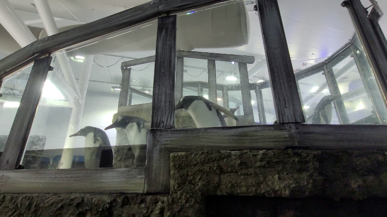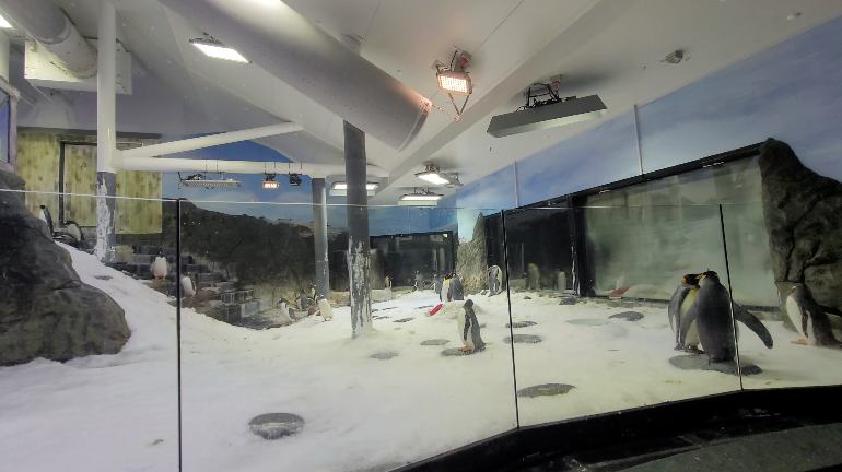 이러한 펭귄의 생활 환경을 고려하여 펭귄 구역은 다른 구역보다 온도가 낮습니다.