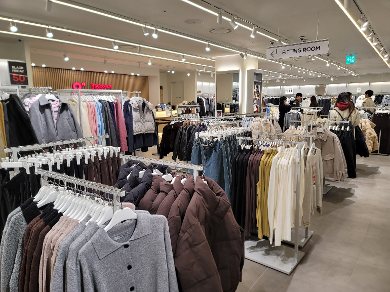 겨울을 앞두고 따뜻한 옷들이 많이 진열되어 있었어요.