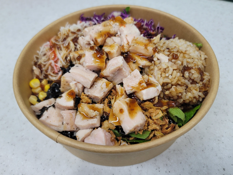 수비드 닭안심이 100g 들어가 있는 포케입니다.